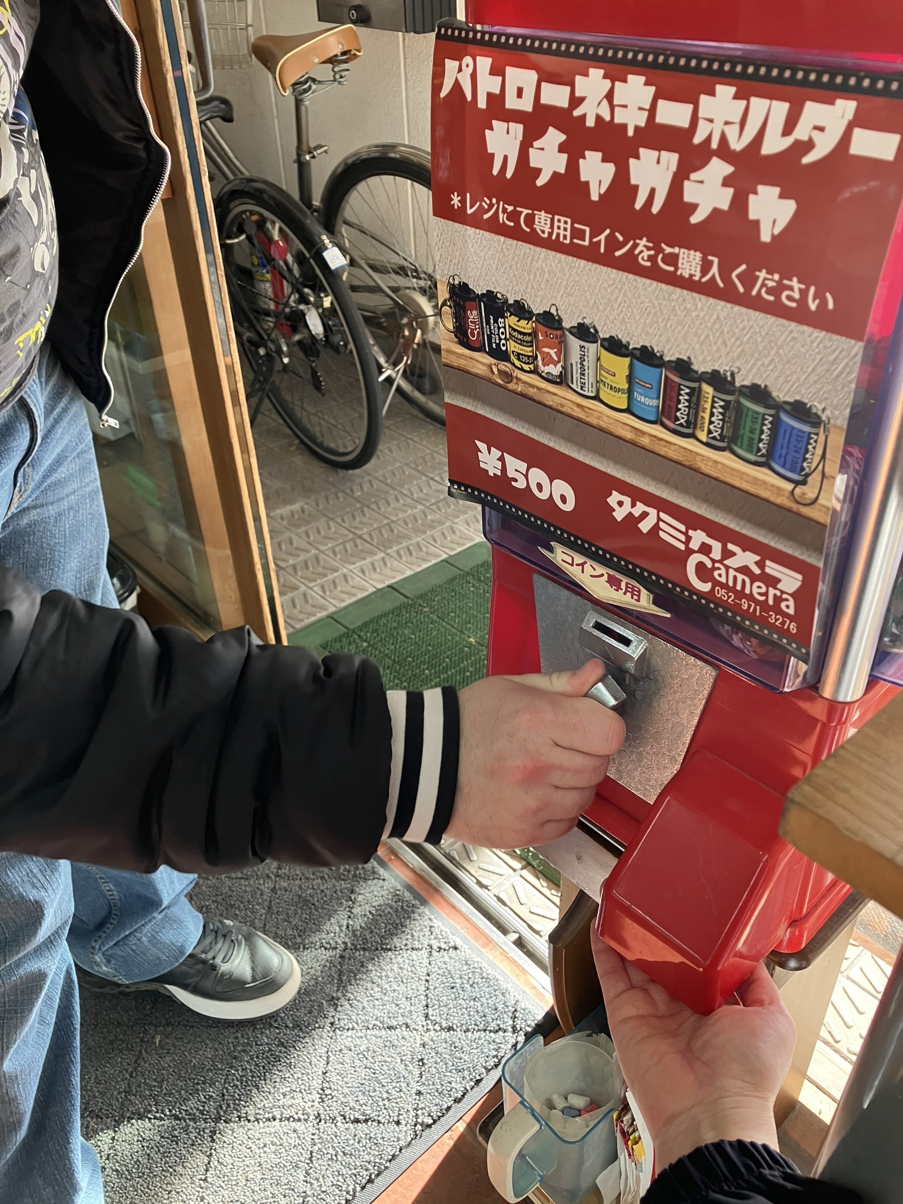 さて、本日は小学校での出前授業きっかけで店頭に設置したパトローネキーホルダーガチャガチャですが…外国人観光客の方々になかなかに人気です♡