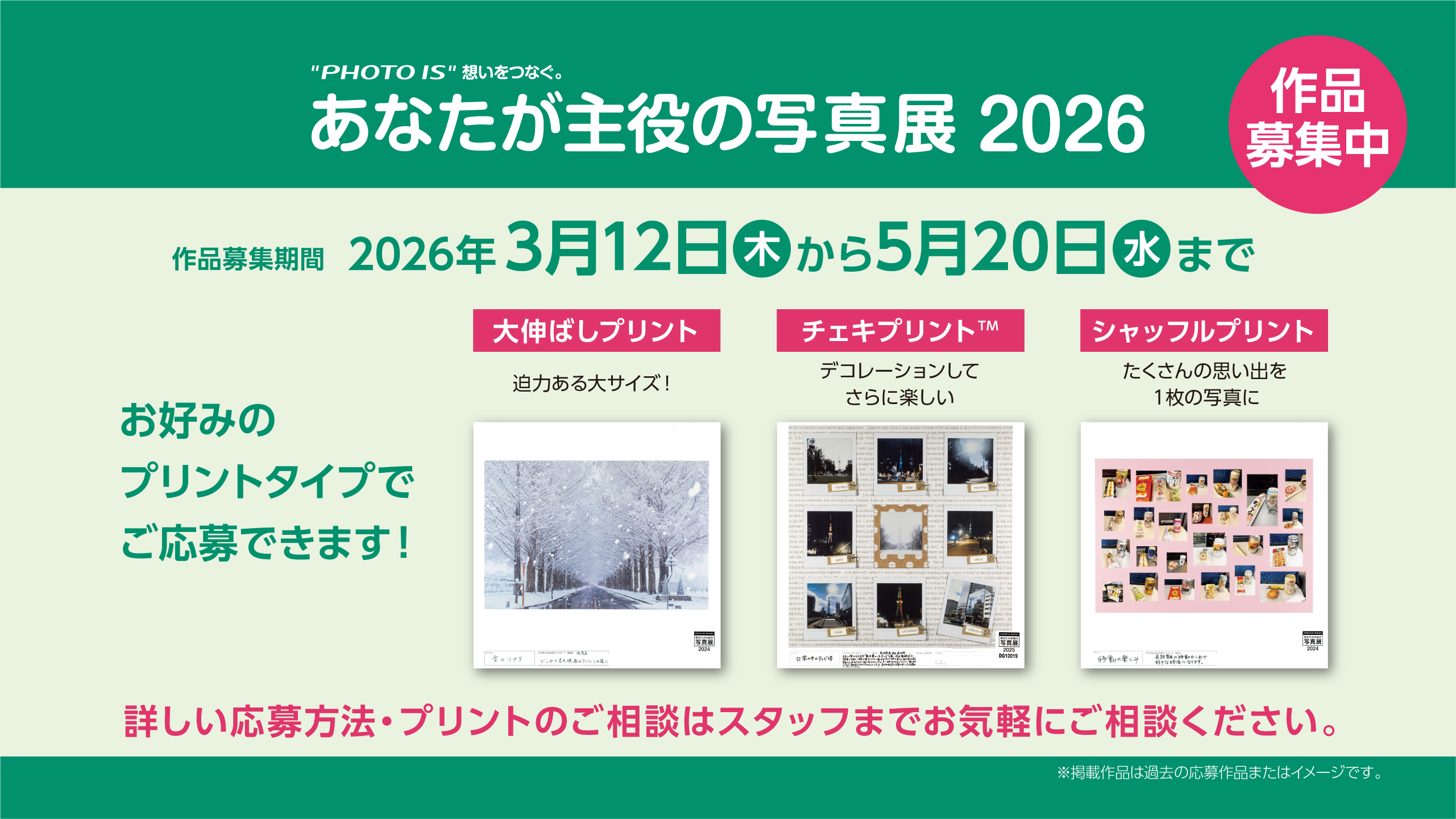 本日は”PHOTO IS” 想いをつなぐ。あたなが主役の写真展2026」作品募集のお知らせです💡